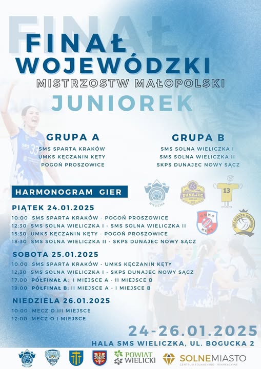 Już w ten weekend 24.01-26.01.2025 r., rozpoczną się pierwsze w tym sezonie finały Mistrzostw Małopolski. Do walki o medale staną JUNIORKI i JUNIORZY. Zapraszamy do Wieliczki i do Nowego Sącza kibicować swoim zespołom. Szczegóły poniżej![]()