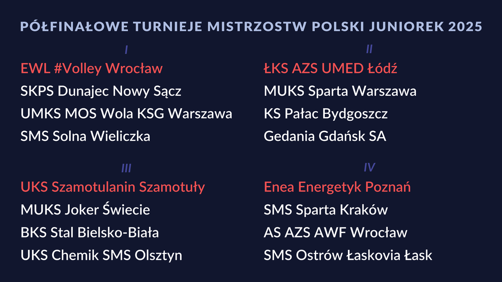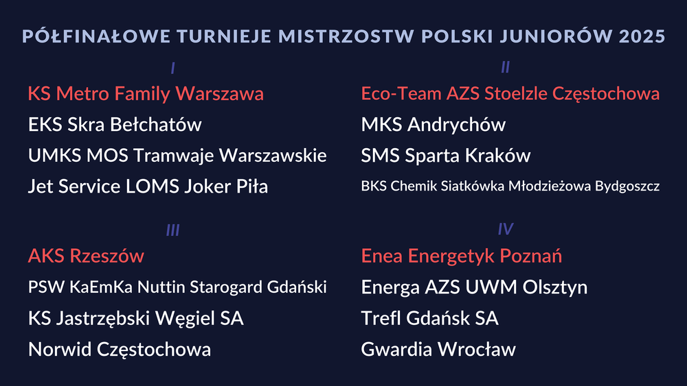 ZNAMY JUŻ GRUPY PÓŁFINAŁOWE MISTRZOSTW POLSKI JUNIORÓW I JUNIOREK: